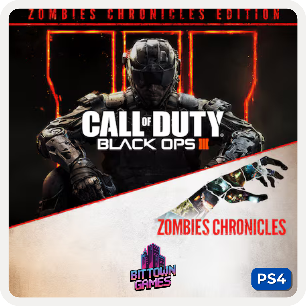 Call of Duty: Black Ops III - Edição Zombies Chronicles é um pacote que inclui o jogo base de Black Ops III e o pacote de conteúdo adicional Zombies Chronicles, que remasteriza oito mapas clássicos de Zombies de jogos anteriores da Treyarch. Adquira hoje para seu PS4 em mídia digital.
