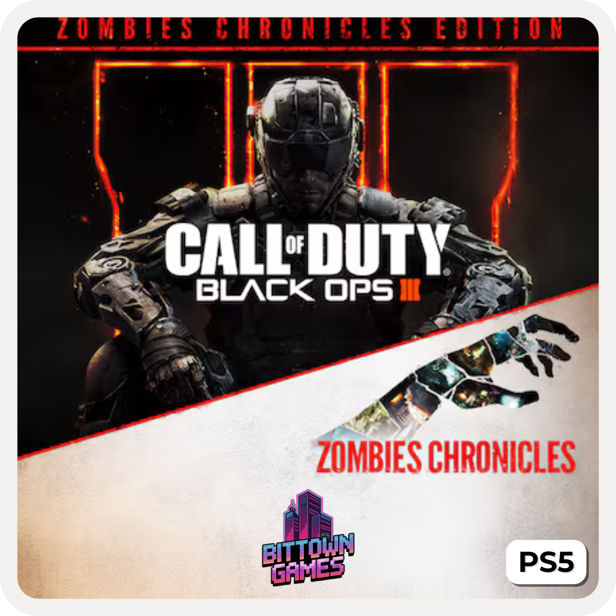 Call of Duty: Black Ops III - Edição Zombies Chronicles é um pacote que inclui o jogo base de Black Ops III e o pacote de conteúdo adicional Zombies Chronicles, que remasteriza oito mapas clássicos de Zombies de jogos anteriores da Treyarch. Adquira hoje para seu PS5 em mídia digital.