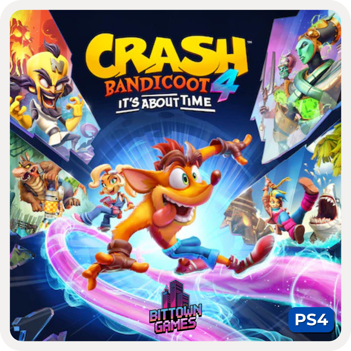 Em Crash Bandicoot 4: It’s About Time, Crash e Coco viajam por dimensões alternativas para reunir as quatro máscaras quânticas e derrotar os vilões Cortex e N. Tropy em uma plataforma colorida e desafiadora. Adquira agora sua mídia digital PS4.