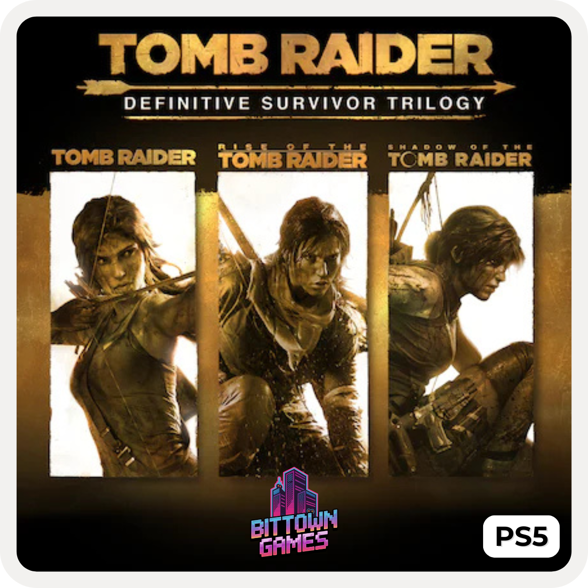 Acompanhe a jornada completa de Lara Croft desde sua primeira sobrevivência até se tornar a lendária exploradora em três aventuras cinematográficas. Leve agora sua mídia digital para PS5.